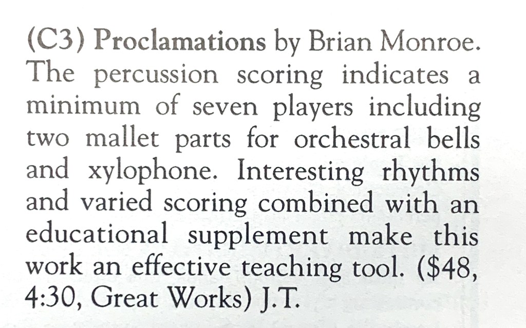 Proclamations, for Grade 3 concert band, is published now by Keiser Southern Music/ Ludwig Music and is available for purchase.