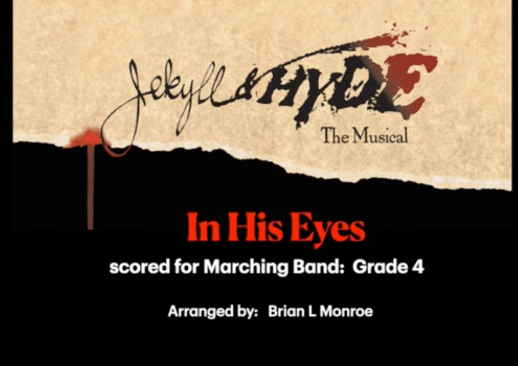 In his Eyes: From Frank Wildhorn’s Musical Jekyll & Hyde comes this wonderful Ballad. Featuring lush Woodwind Soli and solos for Trumpet and French Horn, this arrangement will make your marching band sounds magical. Grade 4